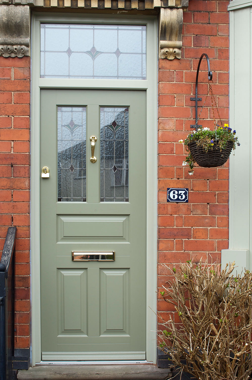 The specially designed Front Door is based on the “Kingston” design from the extensive Timber Windows range, and has been adapted to be in keeping with the original style (compare it to the neighbouring property in the pictures), is painted to complement the window colours, and features decorative glazing to the door and top light in the “Classic” pattern.