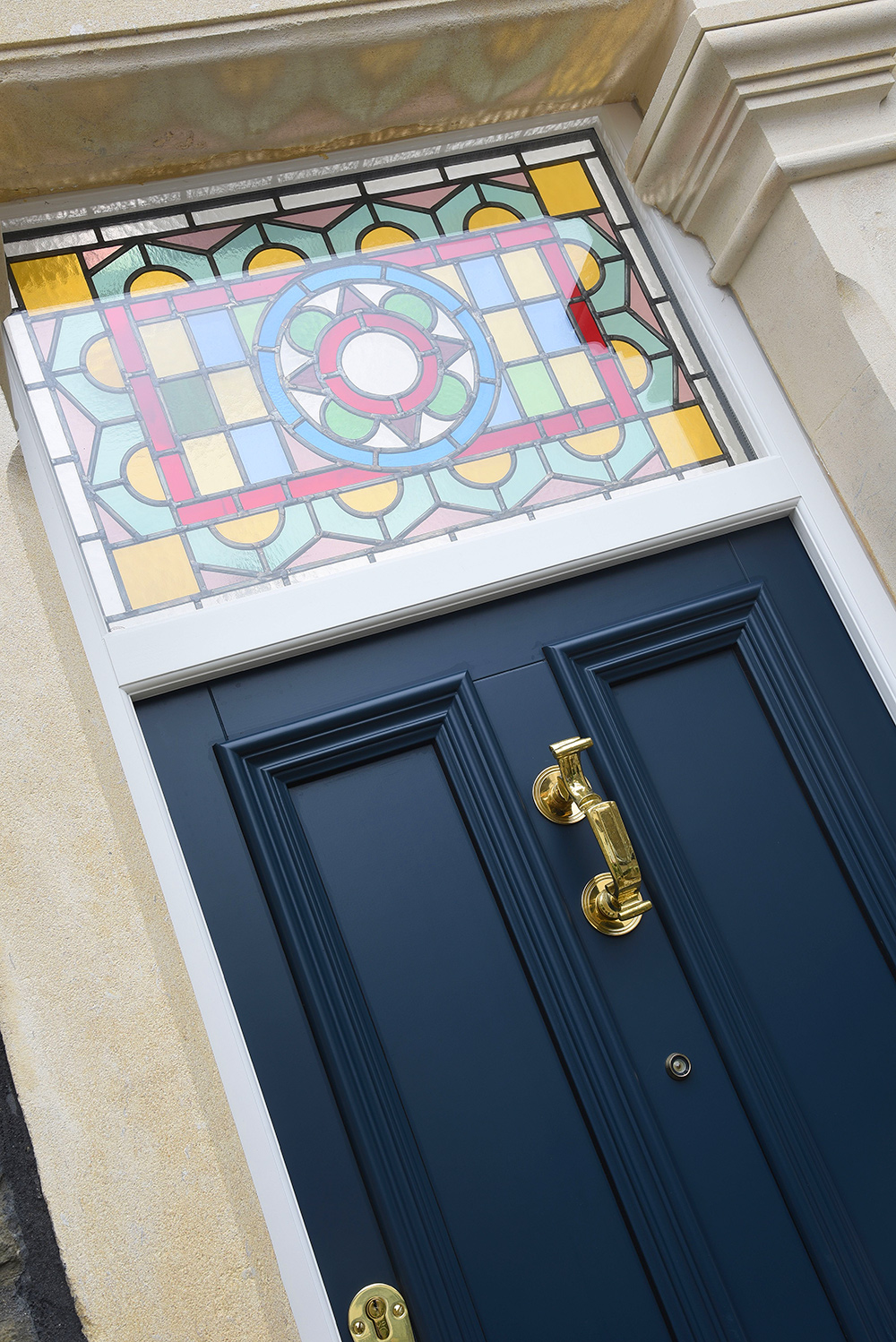 The beautiful toplight on the new door is a bespoke stained-glass design and is a close replica of Mr Mein’s neighbour’s door.
