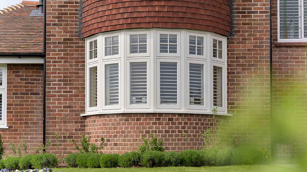 Flush casement windows finished in ‘Off-White’, with 18mm astragal glazing bars. Manufactured in Engineered European Redwood.