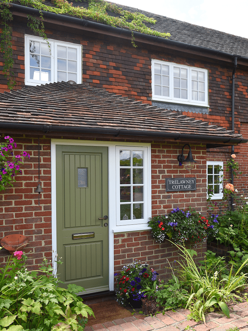 A number of Cottage Flush Casement windows manufactured in Engineered Meranti Hardwood and finished in White with 27mm astragal bars were chosen, along with two single entrance doors. Both timber doors are finished in an earthy shade known as Verdi, have Etched Star glass and various Bronze finished Samuel Heath ironmongery items.