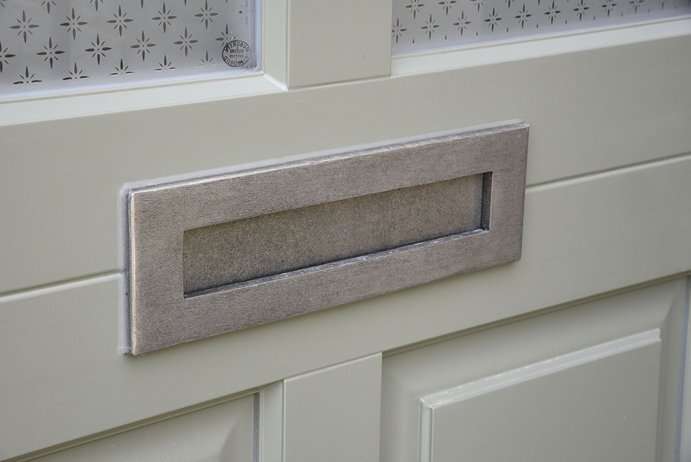 The traditional Kingston door and sidelights are designed with form and balance in mind. A matching trio of pewter knocker, handle and letterplate is joined by etched star glazing for the perfect finishing touches.