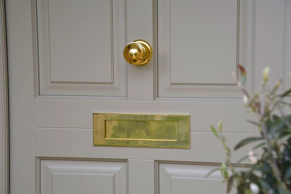 Selecting their new windows and doors, Mr & Mrs Passmore chose a ‘French Grey’ finish throughout. The new front door is our Chalfont design and has Polished Brass ironmongery providing the finishing touches, while the Lipped Casement windows have graceful 18mm astragal glazing bars.