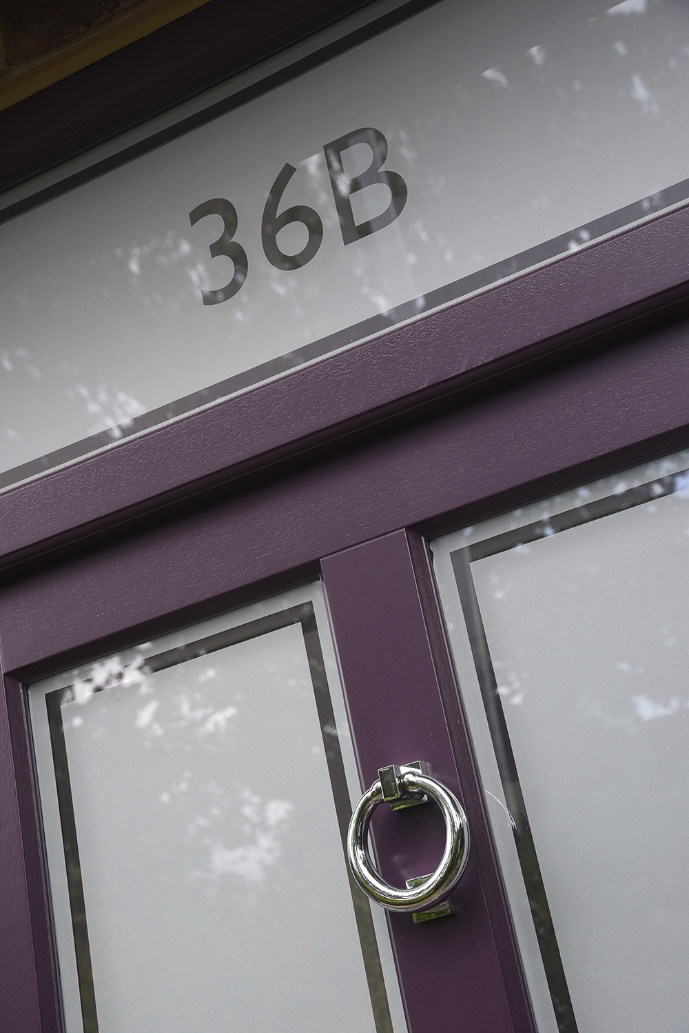 Adding a sandblasted number to the glazing is a stylish yet practical design choice, and depending on the font you choose, can give a traditional or modern appearance.