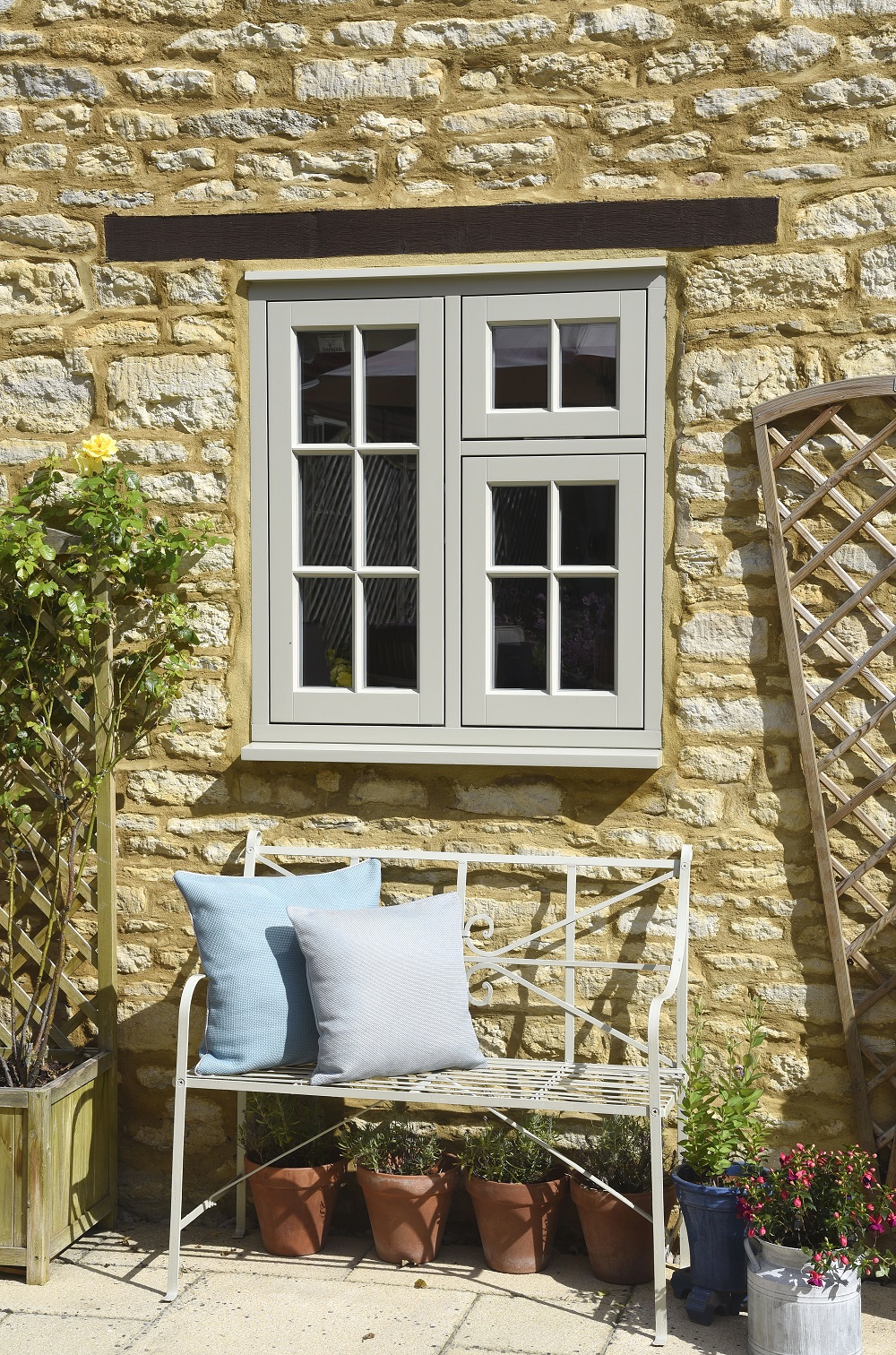 Flush casement window finished in ‘French Grey’ with 27mm astragal glazing bars.