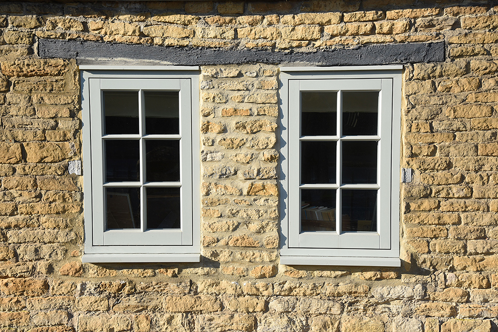 Sash windows finished in ‘French Grey’ with 27mm astragal glazing bars.