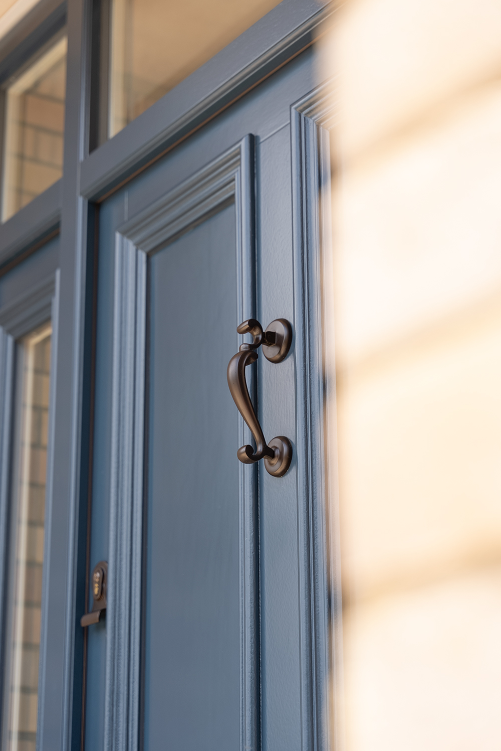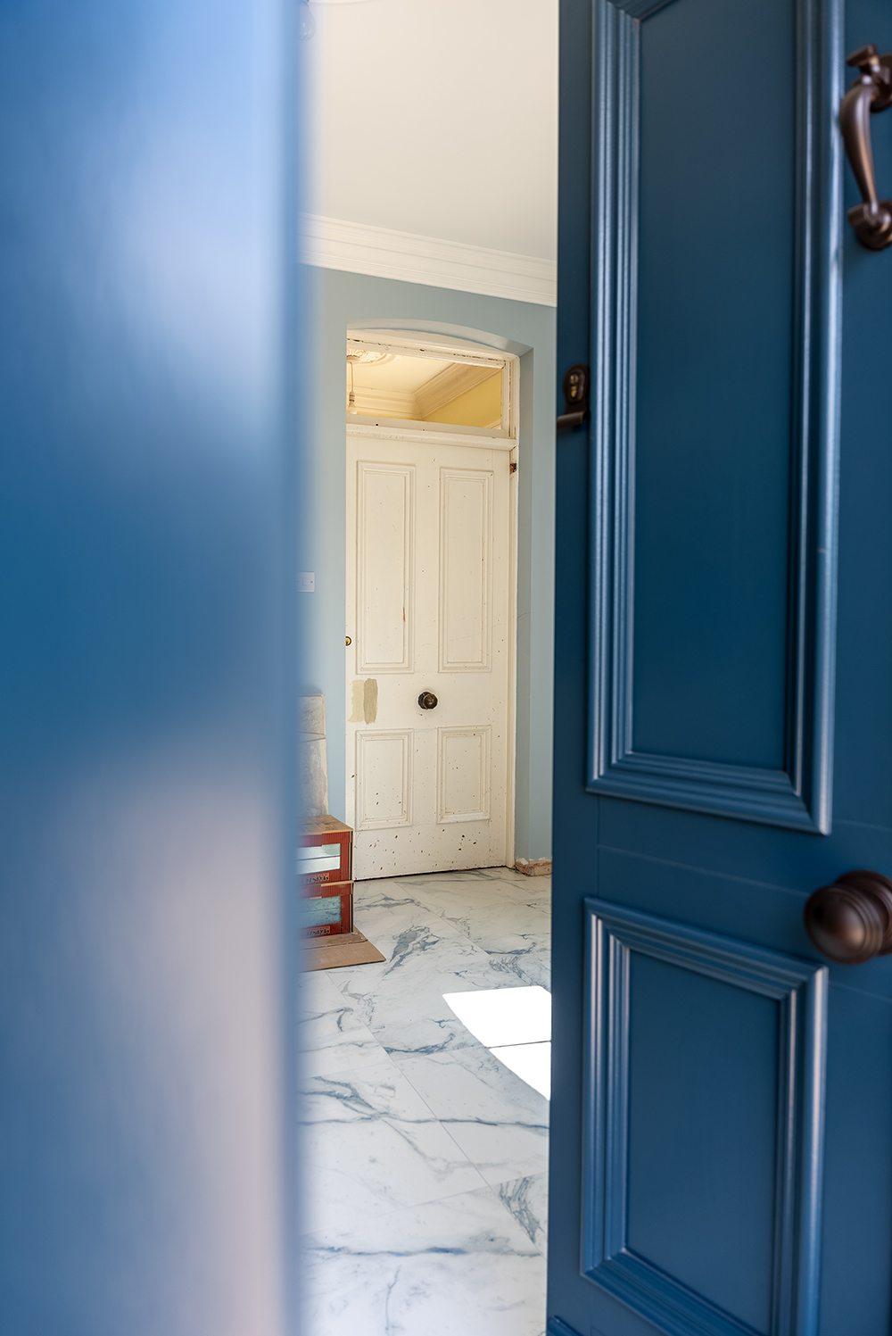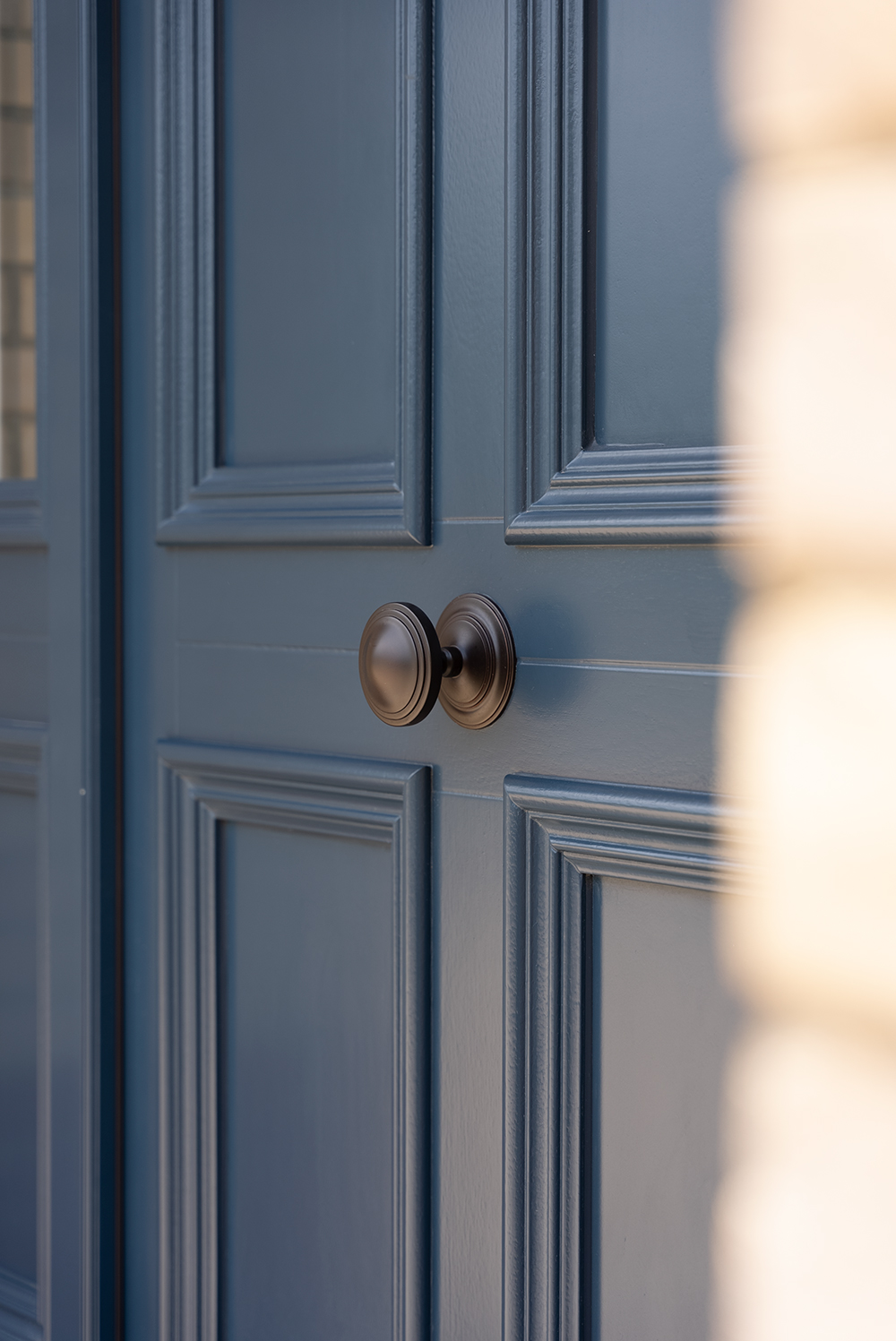 The new front door was inspired by the original hallway door, which is being retained and restored. Its mouldings and details were a very close match for our Bevington door with optional bolection mouldings.