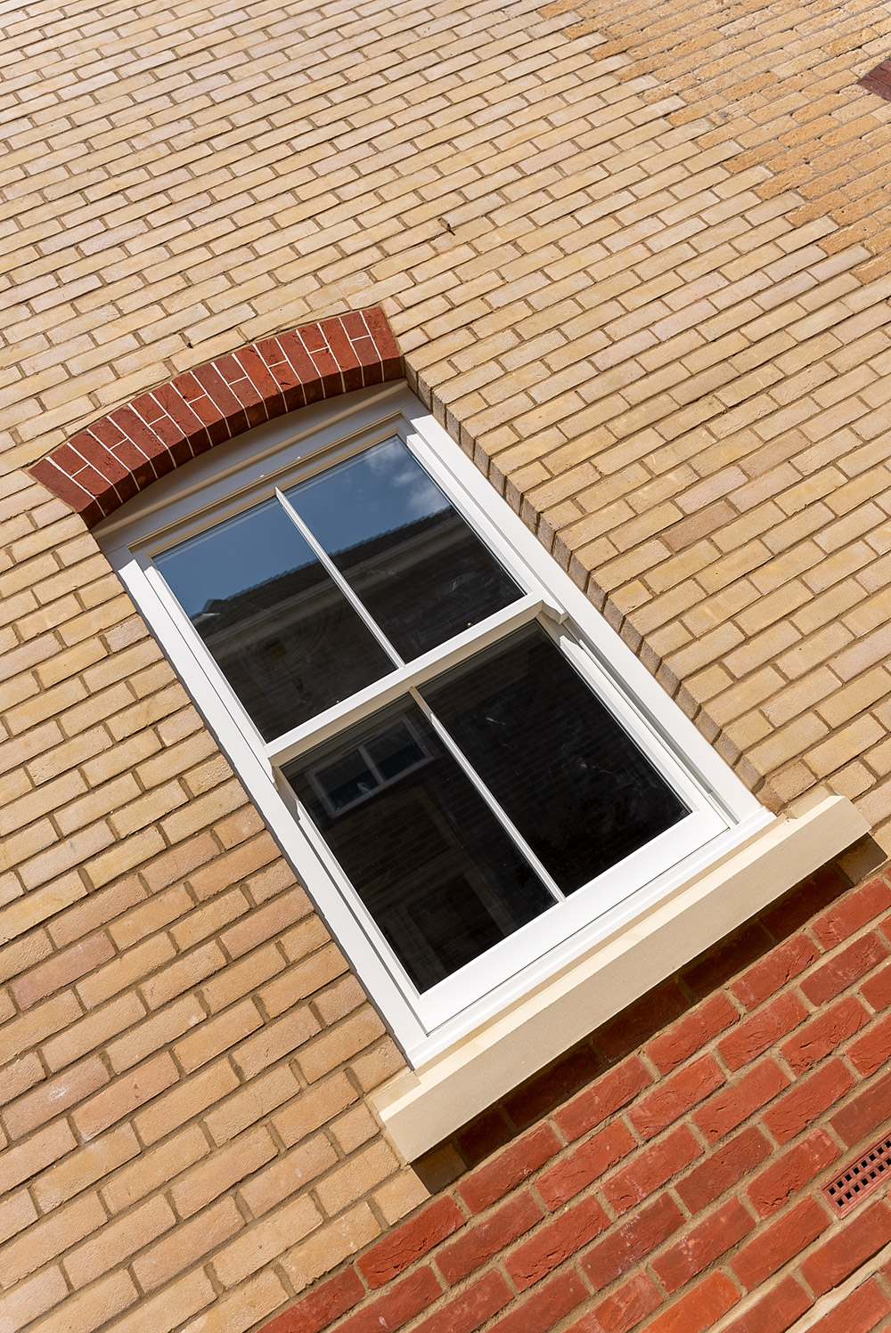 Slim sash windows, with the majority finished in “Off-White” and a striking entrance doorset in “Harewood Grey” were selected to complete the vision.