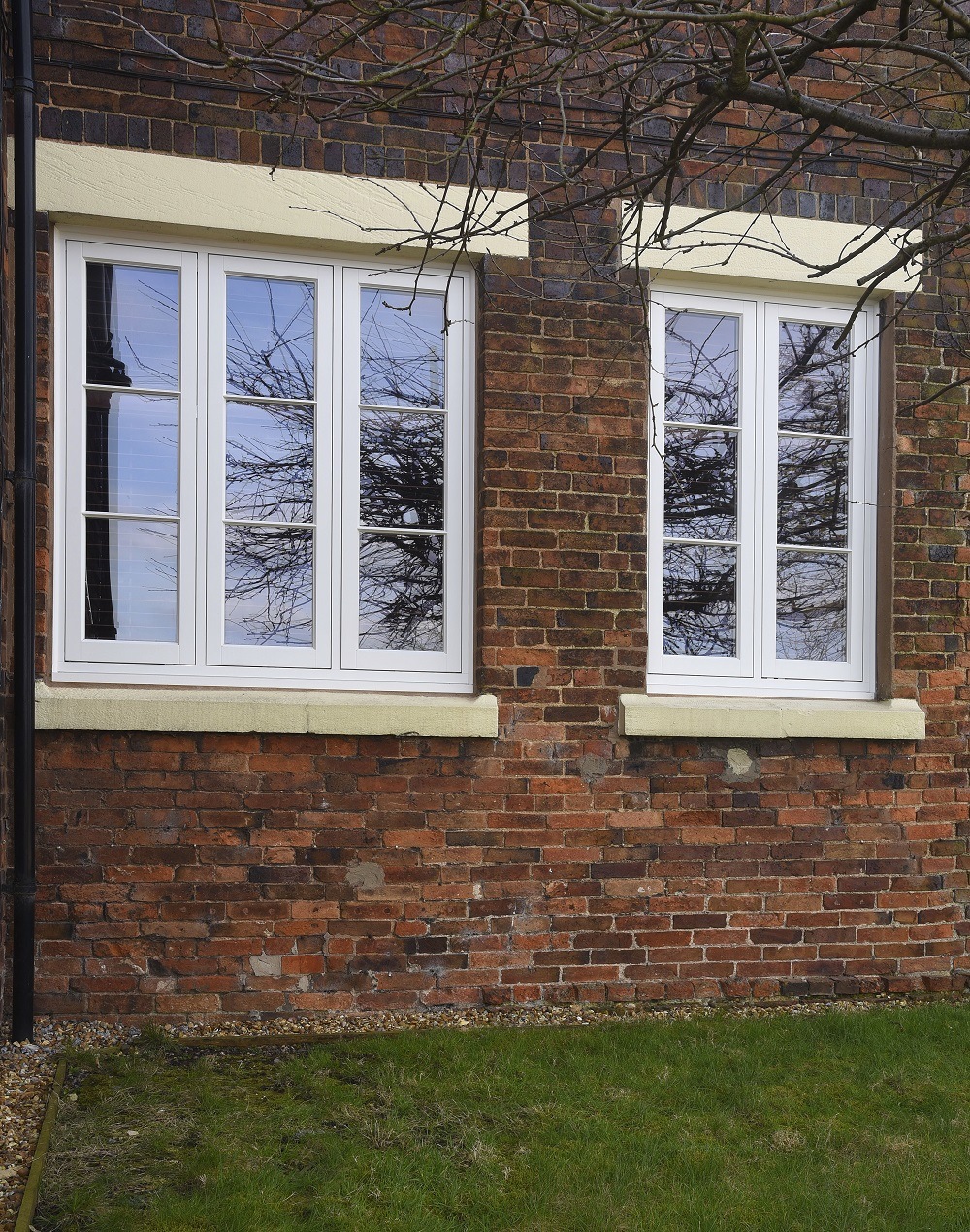 Flush casement windows finished in ‘White’ with 18mm astragal glazing bars.