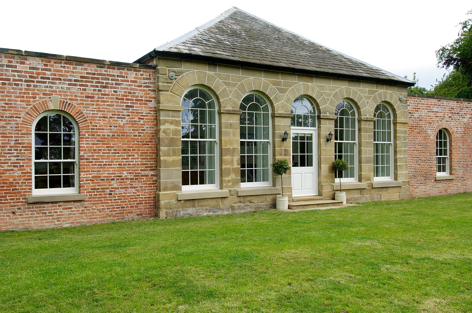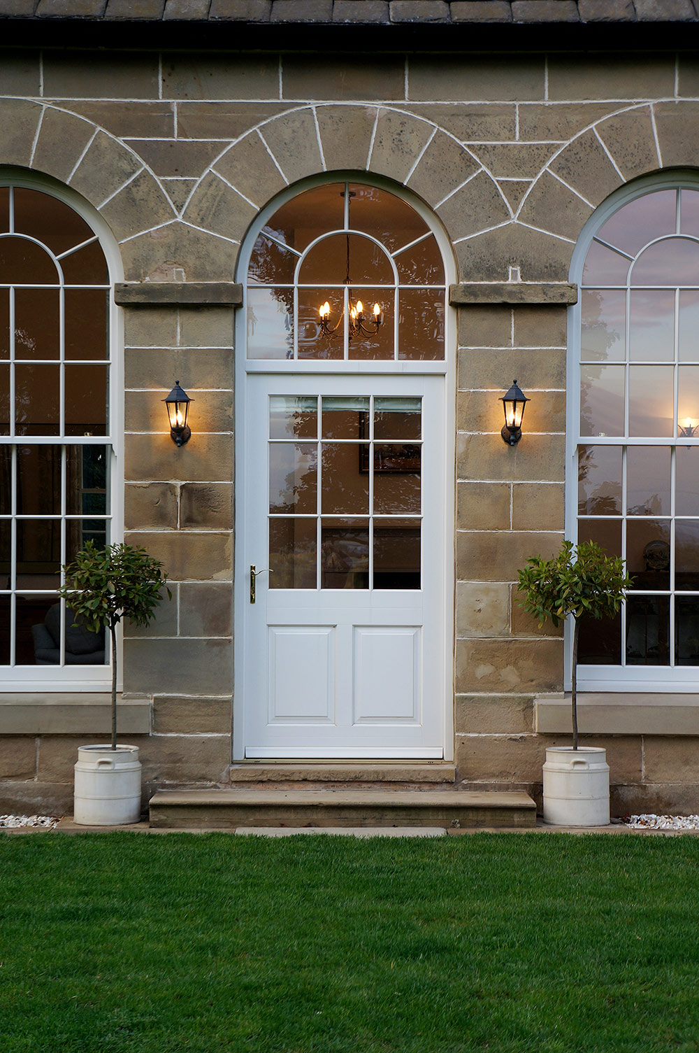 Tall Arched Sash Windows and Entrance Door
