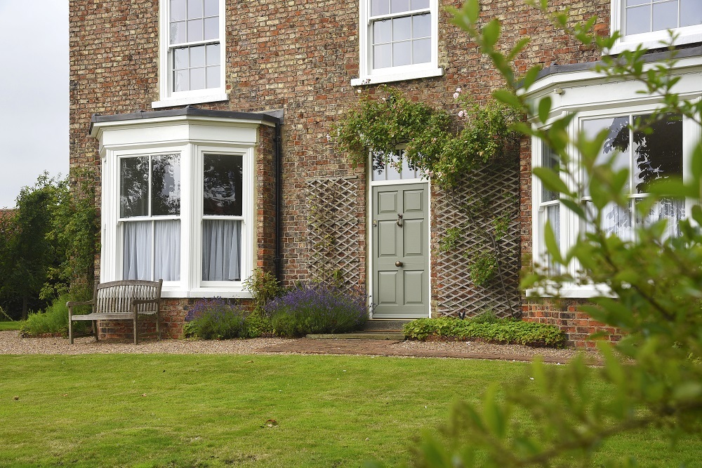 Slim sash windows in ‘White’ and a characterful entrance door in ‘Tent Grey’ with Antique Brass Samuel Heath ironmongery were chosen to retain the period aesthetics of the house.