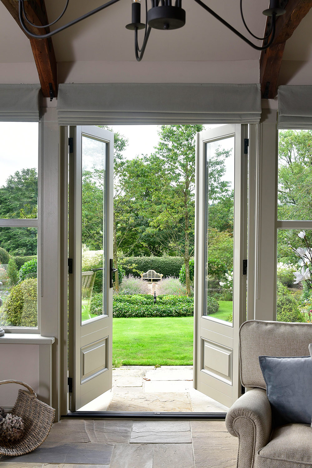 The new slim sash windows are all finished in a colour complementary to Farrow & Ball ‘Hardwick White’.