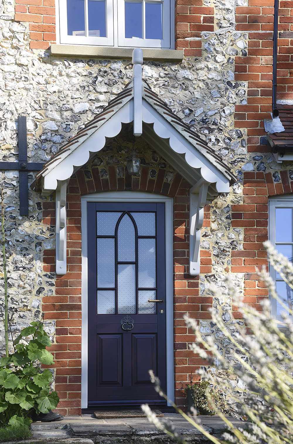 Flush casement windows in ‘Off-White’ and a Kingston entrance door in ‘French Grey’ with a Pewter Cottage handle, all manufactured in Engineered European Redwood.