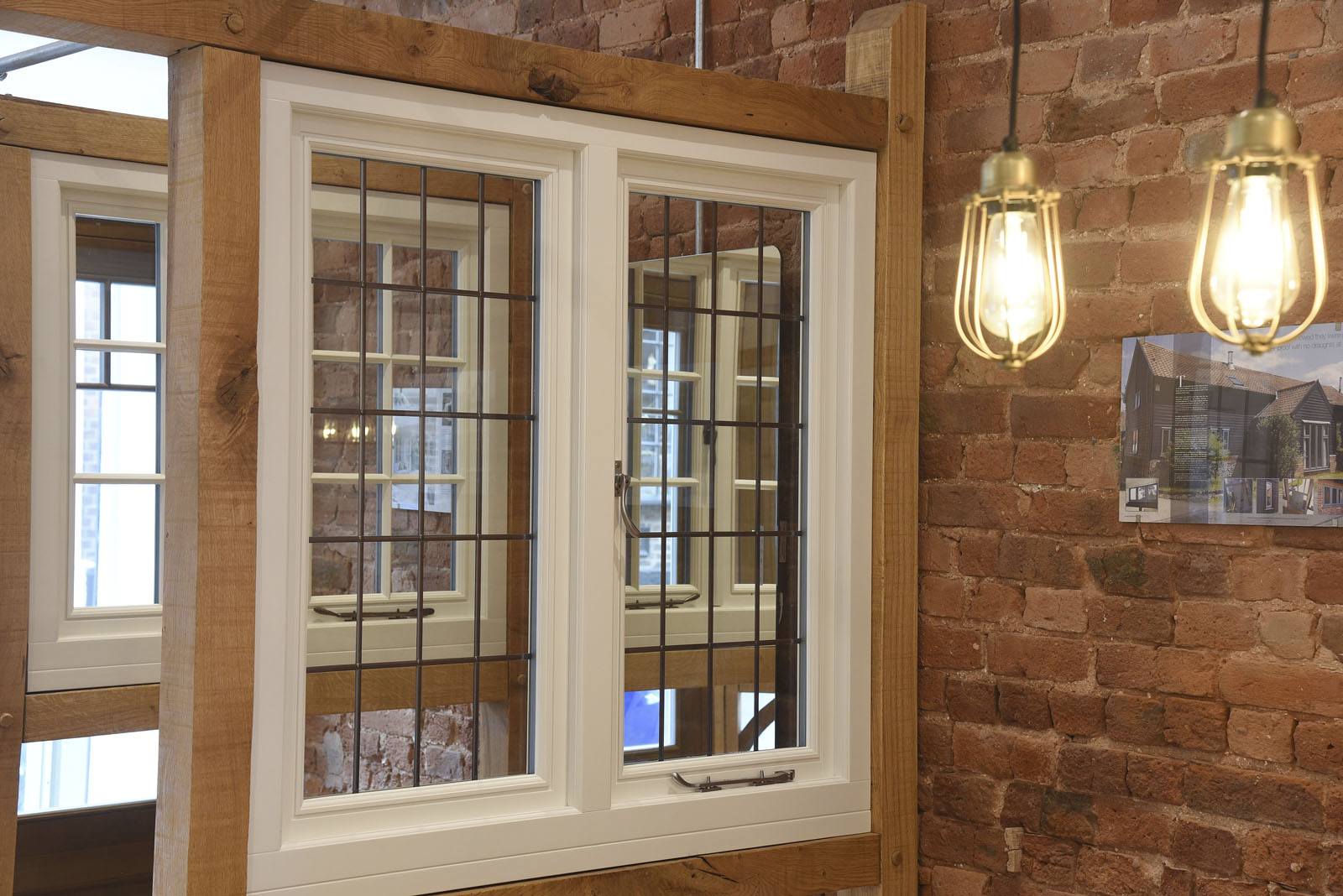 As you walk through our showroom, you will find multiple examples of our range of engineered timber windows and doors, including a charming example of our popular flush casement windows, with leaded light detailing added to bring further character to period homes and cottages in the area.