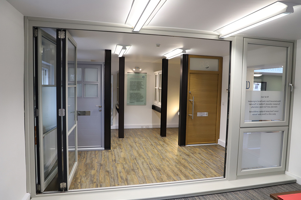 As you walk through our showroom, you will find further examples of our range of engineered timber windows and doors, including our timeless Kingston style door with sidelights, ideal for larger entrance ways.